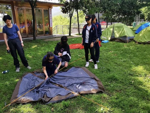 学生们通过地图和指南针的帮助,在第一天就完成了一趟短程的徒步。到达营地之后,他们架起帐篷,在老师的指导下分成小组准备食物:用意大利面、蔬菜以及肉类制作了餐食,并使用酱料进行调味。师生一同烹煮食物、享用晚餐,体会到了劳累一天之后身心的放松与愉悦。同学们一起体验露营生活、一起煮饭、一起探险,能迅速发展彼此的友谊,锻炼各自的领导力,并磨炼团队合作能力。