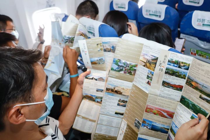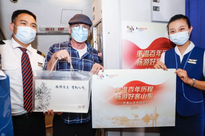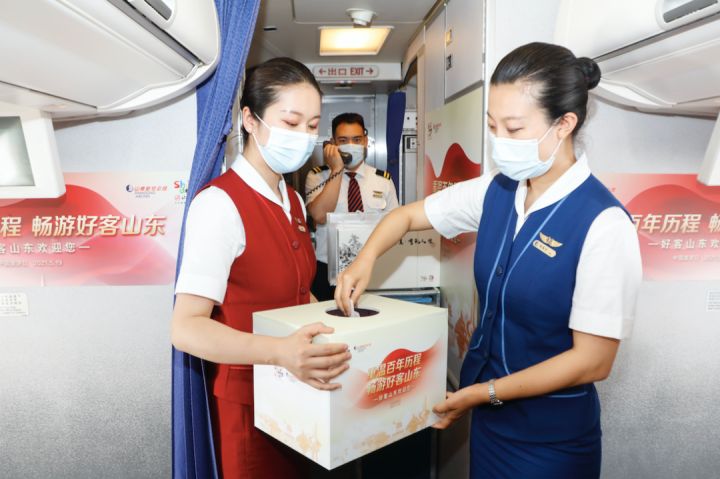 “尊敬的各位旅客大家上午好,今天是中国旅游日,欢迎您乘坐山东航空SC1182由深圳飞往美丽泉城济南的航班... ...”5月19日,山东省文化和旅游厅携手山东航空共同打造了“重温百年历程 畅游好客山东”红色文化旅游主题航班活动,邀请旅客在万米高空共同庆祝中国共产党成立100周年,并学习“中国旅游日”的知识,也更好地传播了山东特色红色文化旅游以及“厚道山航”的服务品牌。