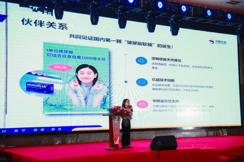作为全国最大的透明质酸研发、生产、销售企业,华熙生物科技股份有限公司高级产品经理臧传敏现场精彩分享《透明质酸钠的创新应用》,作为国内第一颗透明质酸钠软糖的背后操手——【亿超健康】,早在2018年初,就开始测试玻尿酸糖果新品,重点拓展海外OEM业务,在软糖、薄荷含片、压片糖果等不同剂型上尝试创新;在2019年初,开始承接海外订单,实现了玻尿酸糖果的技术突破。据悉在透明质酸钠软糖新品研发初期,【亿超健康】通过对不同规格玻尿酸原料进行反复测试,不断进行创新,最终克服软糖添加玻尿酸的技术难度,成就行业佳话。