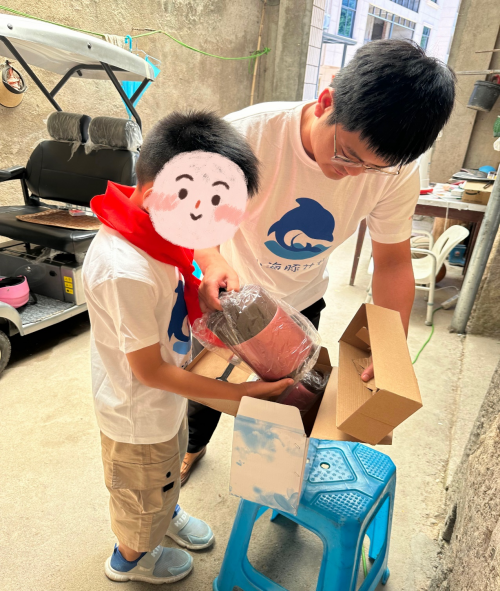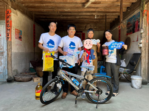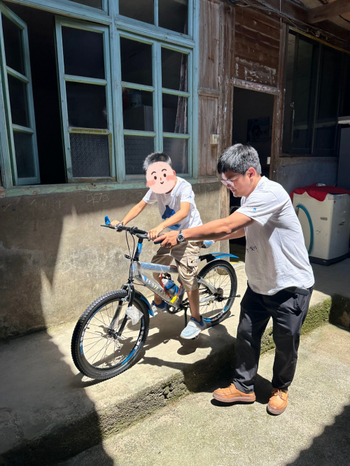小文虽然家庭贫困,但是我们感受到小文性格还是活泼开朗的。当志愿者拿出送给小文的礼物时,小文的两只眼睛都在放光。赵伟新教小文如何骑自行车,在温馨陪伴下,慢慢的,小文和志愿者们也熟络起来,给志愿者们端来香甜的西瓜品尝。短暂的相处时间里,我们看到小文并没有因为家庭的原因让自己变得闭塞,反而是很开朗,相信家人和学校的老师给了他很多的爱护。