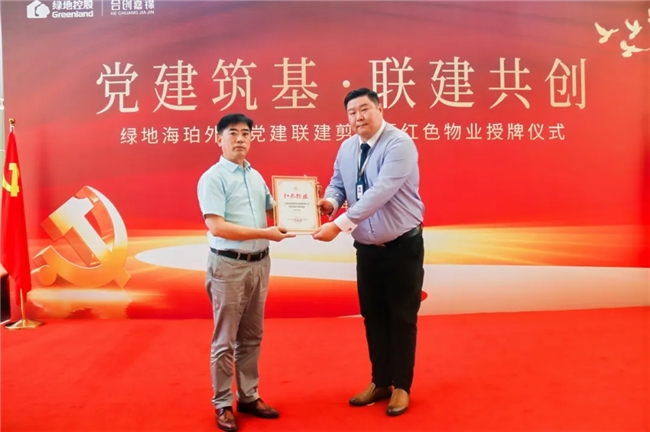 “红色物业”不仅是一个称号,更是一种责任,一种担当,它要求我们以党建为引领,打造有温度、有情怀、有责任的物业服务模式。紧接着,为鼓励合创嘉锦绿地海珀外滩团队在红色物业建设工作中作出的积极贡献,小东门街道将“红色物业”荣誉牌授予他们,表达了对物业团队专业服务和辛勤付出的高度认可,以及对他们未来发展的殷切期望。