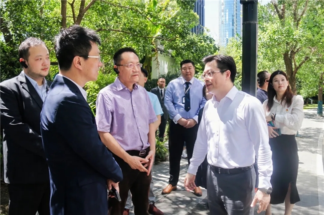 仪式结束后,最后一个环节,嘉宾们在工作人员的带领下参观了绿地海珀外滩红色路线,从有着300多年历史的商船会馆、口袋公园的生物多样性角落到党建联建文化空间。