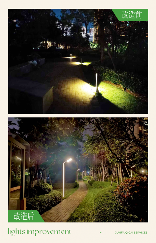据物业团队介绍,他们对小区的灯光问题进行了全面排查和改造。从采光井玻璃损坏、庭院灯照明不足到大堂灯无感应控制等问题,物业团队都进行了细致的观察和记录。在6月份,他们成功完成了小区的灯光改造工程,确保了每一盏灯都能正常亮起,同时也注重节能环保。