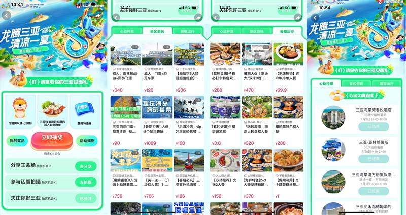 抖音达人体验式拍摄当极具热带风光的三亚美景呈现在你眼前,碧海蓝天椰林树影都成为了三亚这座城市浪漫与自由的具象表达。千家商户梦幻联动,超值好物点燃消费热情本次「心动目的地」活动撬动了千余家品牌商户共通参与其中,为用户打造了夏日三亚“旅行全链路”服务,让用户可以足不出户一键get旅行中的吃喝玩乐住行购,旅行「多面手」可不只是说说而已!为了满足更多用户的旅行需求,在活动期间,抖音生活服务和三亚市旅游发展局也通过整合三亚本地景区、酒店、商家娱乐产品等项目,助力三亚城市旅游节专属旅游产品打造。本次活动通过联合商家推出超值特惠、错峰特惠等丰富的营销玩法,并推出上线平台立减优惠券,进一步拉近了消费者与心动体验、优质商品的距离。 进入主会场参与抽奖互动,优惠券活动吸引了超百万用户福利下单,同时并以达人品牌专场直播等方式,持续释放旅游市场消费能力。