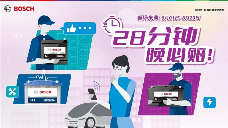 夏日炎炎,高温天气下蓄电池更易亏电打不着火,广大车友有可能遭遇车辆“趴窝”情况,出行体验大打折扣。针对这一场景,京东养车两度联合行业知名蓄电池品牌,为消费者打造“28分钟晚必赔”服务。此次活动期间,活动城市的消费者每天9:00-18:00在博世蓄电池京东自营旗舰店和骆驼蓄电池京东自营旗舰店下单并选择“立即送达”,下单后28分钟内技师将会抵达指定地点进行安装。若超时车主则可以联系店铺客服申请补偿20元京东E卡。而在当日18:01至次日8:59时间段,技师也会与用户沟通预约上门时间,晚于约定时间28分钟上门,用户也可获得20元E卡赔偿。