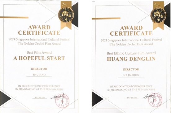 (《南风徐来》最佳影片获奖证书 ) (《云上法官》最佳民族文化影片获奖证书)