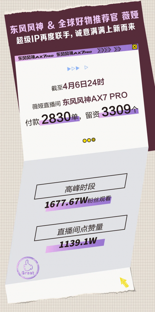 一边带货一边种草,薇娅再为风神售罄2830台AX7 PRO
