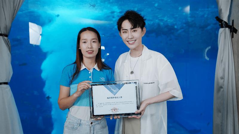 蓝丝带海洋保护协会蒲冰梅秘书长为瑜大公子颁发“海洋倡议大使”证书