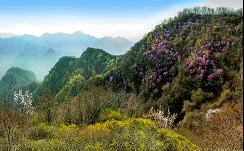 当见到满山杜鹃盛开,就是爱神降临的时候。京东大峡谷景区满布野生杜鹃花,当春季盛开时,满山鲜艳,像彩霞绕林,十分美丽。京东大峡谷的杜鹃花多为紫色和白色 ,或星点分布,或成片争艳。尤其是道路两旁的杜鹃花,更是让人们不禁想起,全国无数的医护工作者。他们在新冠肺炎疫情来临时,逆行而上,坚守在抗击新冠肺炎疫情的第一线。京东大峡谷的满山杜鹃花,仿佛在致敬全国医护工作者,致敬为抗击新冠肺炎疫情付出的每一个人。