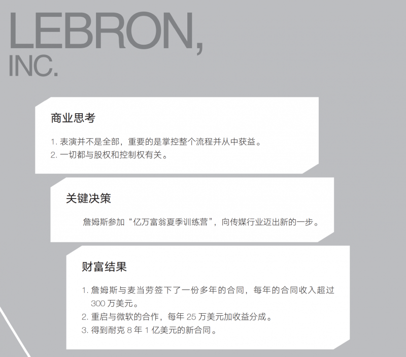 如果你关注体育从产业的发展,这本书给了你一个体育到商业成功转型的范例,你还可以看到NBA商业谈判、球星交易等内幕;还可以了解到成功的个人品牌运作方式和名气变现模式。