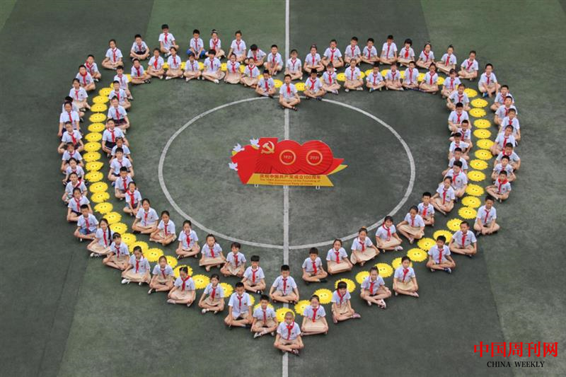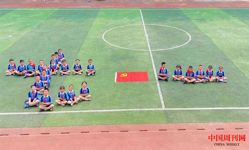 石家庄沿东小学少先队员“花样表白”伟大的中国共产党