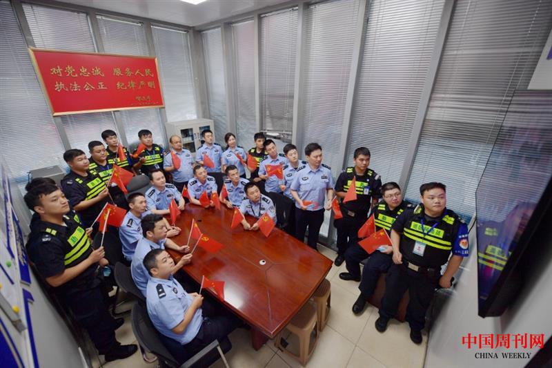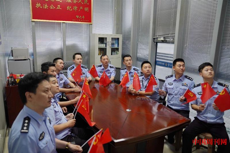 南京建邺公安分局全体民警、警辅实时收看“庆祝中国共产党成立100周年大会”