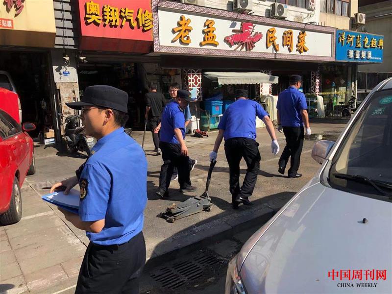 占道修车不可取 南京建邺区城管联动清出畅通路
