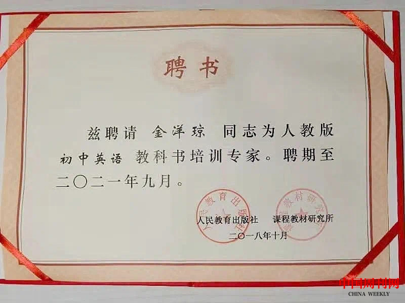 金堂中学外国语实验学校金洋琼老师获评人教出版社教材培训“优秀专家”