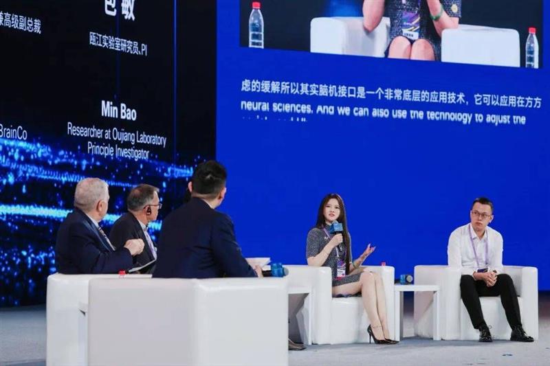“以人为本”一直是BrainCo强脑科技遵循的理念,践行于脑机科技产品的研发中,“高端访谈”环节亦围绕这项时下热门的前沿科技展开。访谈由开幕式主持人、中央广播电视总台CGTN主持人王冠主持,约瑟夫·胡顿·泰勒教授,安德鲁·詹姆斯·格林肖教授,BrainCo 强脑科技合伙人兼高级副总裁何熙昱锦,瓯江实验室研究员/PI包敏等人参与。