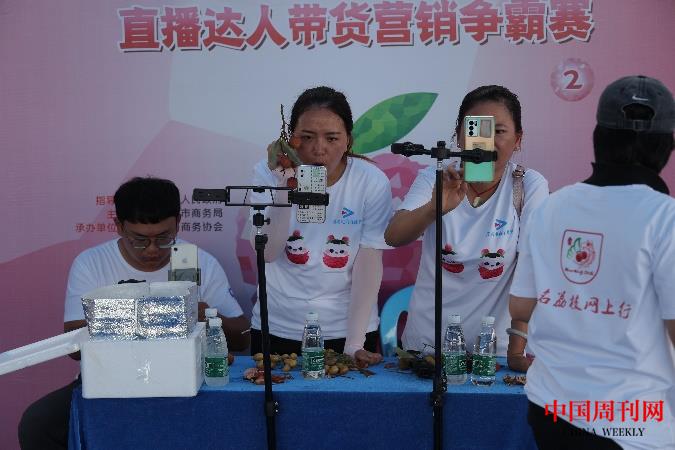大赛启动仪式结束后,带货达人赛在荔枝园内火热开战。参赛组别在各自精心挑选的直播点开播带货,直播场面精彩激烈。直播达人各施所长,为茂名荔枝代言,为茂名特色农产品开拓新销路。