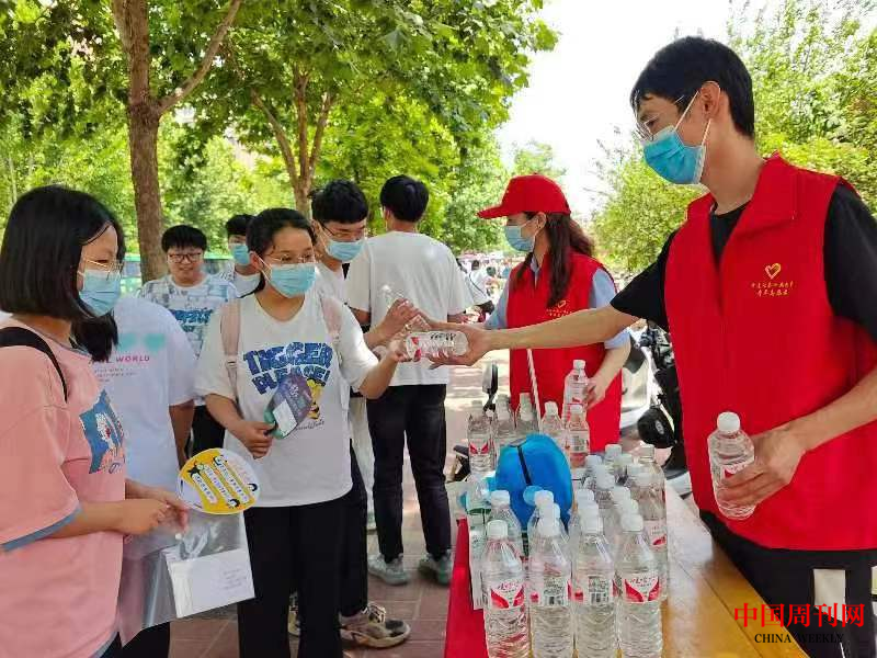 学子苦读十二载,一朝收获终有成。“同学,来瓶水,考试加油!同学,来个口罩,祝你金榜题名!……”在鹤壁市兰苑中学考点,身着潮装,精神抖擞,积极热情的志愿者给考生送上水和口罩,成为高考期间独特的风景。一瓶瓶水、一包包纸巾、一个个口罩、……递到考生的手中,一句简单的“考试加油”让考生感受到更多鼓励。随着考生进入考场,志愿者把水送到陪考家长手中、送到助考的特警、交警、城管和学校保安、保洁手中……让温暖流进每一个人的心田。接过志愿者手中爱心大礼包的考生和陪考、助考的家长、工作人员纷纷夸赞:“这样的爱心活动真是太暖了,想得真周到……”