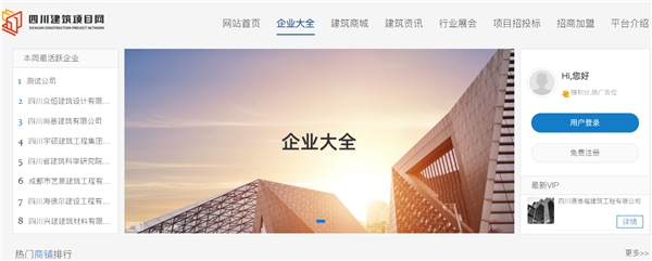 四川建筑项目网集企业大全、建筑商城、建筑资讯、行业展会、项目招投标、招商加盟、平台介绍,七大版块构成。平台发展目标在于充分发挥建筑行业之间的桥梁、纽带作用,并重点打造企业整合服务、行业商城、项目合作、专业支持、资讯管理等多重功能,为全国建筑企业提供专业化的综合服务。
