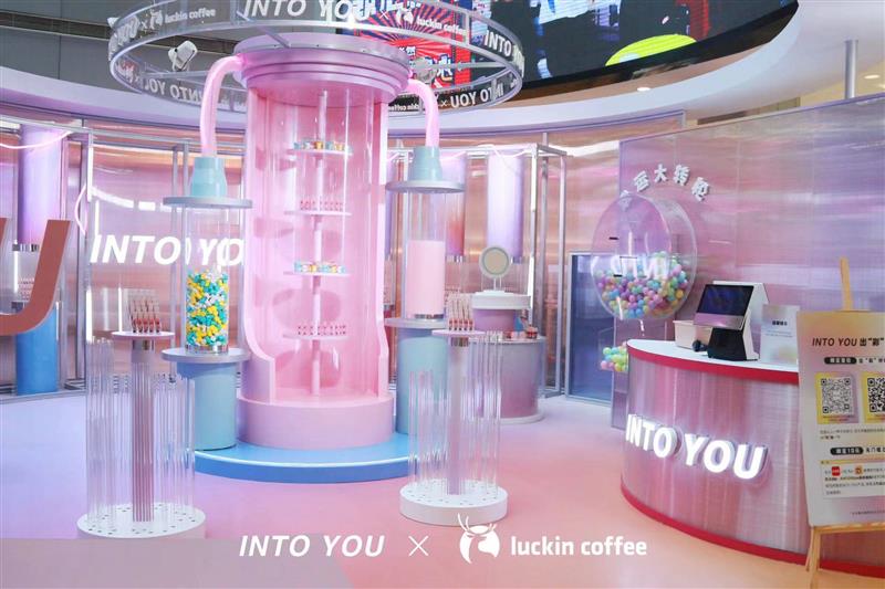 “夏日「出彩」研究所”还设置了可以品尝瑞幸咖啡的「缤纷能量站」以及体验INTO YOU产品的「色彩玩“妆”区」,让人们可以在打卡线下快闪店的同时深入了解并种草产品。在INTO YOU美妆区,满满当当的水雾唇釉与快闪店设计遥相呼应,同时也陈列了女主角唇泥、空气唇泥、指尖唇釉、水折光唇釉、INTO YOU皮克斯草莓熊系列、摩尔联名系列、四事烟火眼影盘等全色号产品,在这里顾客可以一次性免费试遍你喜欢的INTO YOU热门色号。