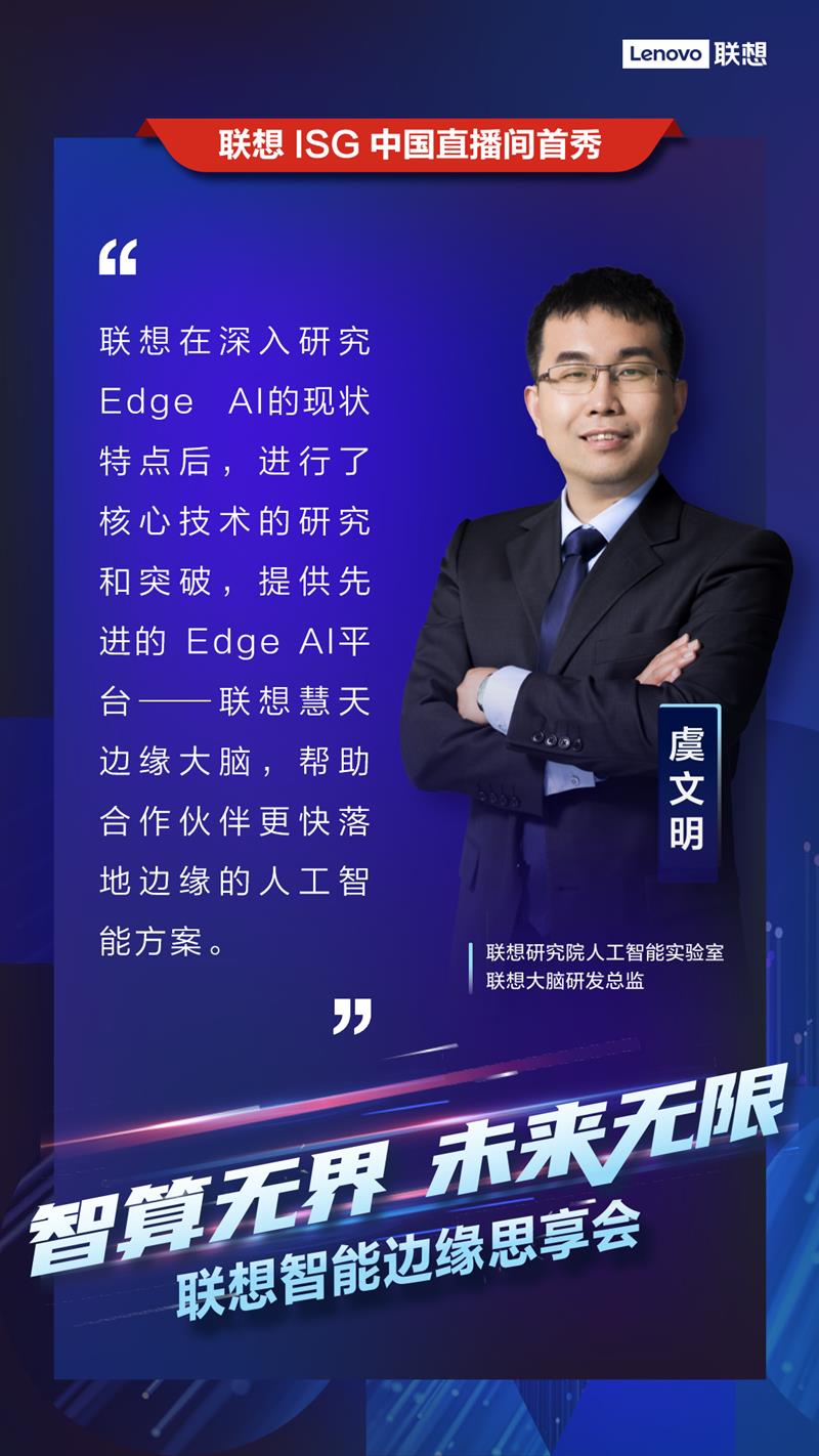 在边缘计算领域,联想不仅有丰富的自研产品,也有前沿的平台型技术。联想研究院人工智能实验室、联想大脑研发总监虞文明表示,为了让AI(人工智能)方案更好地在边缘侧落地,联想通过深入的研究探索,突破关键核心技术,已经能够为客户提供先进的Edge AI平台——联想慧天边缘大脑。