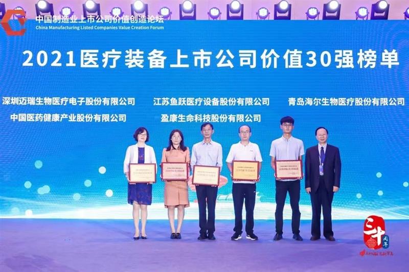 7月29日-31日,由中国设备管理协会、机械工业经济管理研究院与青岛市人民政府联合主办的“第七届中国制造业上市公司价值500强大会暨高端医疗器械与健康产业数字化创新日”活动在青岛举办,盈康一生旗下海尔生物同时上榜“年度中国制造业上市公司价值500强”与“年度中国医疗装备上市公司价值30强”,旗下盈康生命上榜“年度中国医疗装备上市公司价值30强”。