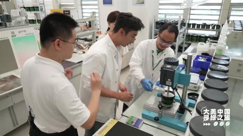 除了园区的生态之美,三棵树的绿色硬实力也不容小觑。武大靖一边和大家一起寻绿,一边还开发了新技能,如愿当了一回“粉刷匠”。