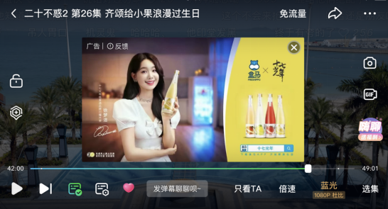 除植入剧情和携手明星之外,十七光年也在剧集播放平台上,以“口播转场+创可贴+暂停广告”等硬广形式集中引爆。相比单点投放形式,组合策略能够以多频次、多场景、长时间触达用户,强化观众记忆度,有效提升品牌认知度和购买意愿。