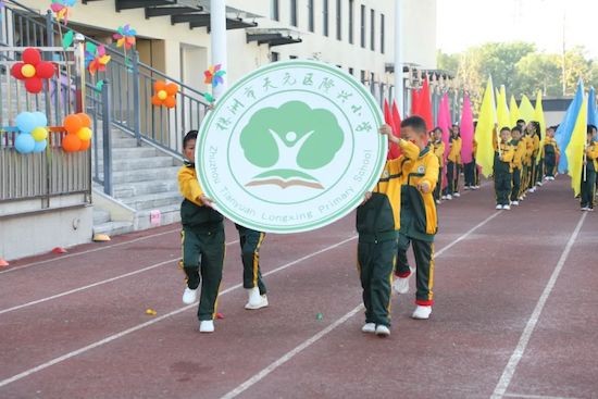 伴随着激昂的乐曲,国旗护卫队、校旗队、校徽队、彩旗队、小国旗队、鲜花方队以及各班班级方队迈着矫健的步伐,精神抖擞、意气风发依次步入运动场。