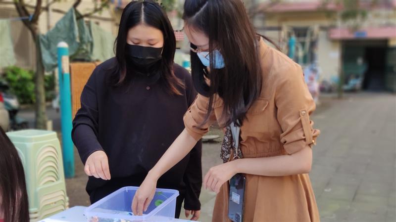 社工首先澄清了活动的内容和目标,对制作材料进行了介绍和说明,对制作流程进行了讲解,用图片和成品呈现微景观手创后的效果,引导参与者们积极构思如何打造自己的微景观,并对微景观的维护组织了集体学习,针对水草、鱼、苔藓等如何养护进行了重点介绍,大家都非常用心地学习。