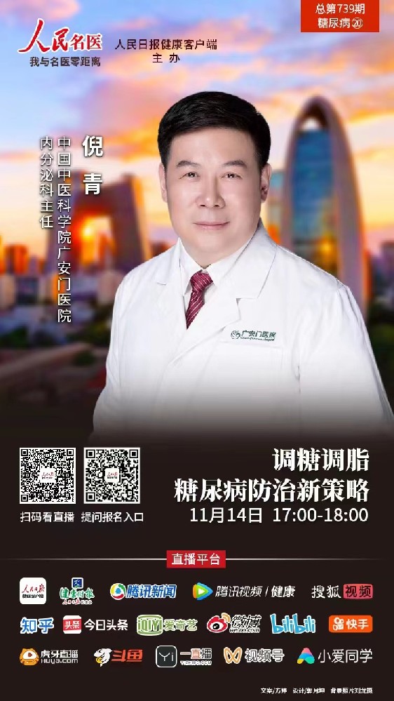 11月14日是世界糖尿病日,中国中医科学院广安门医院内分泌科主任倪青做客人民健康客户端《人民名医》直播间,就糖尿病的调糖降脂、日常综合管理及防治新策略等向广大网友进行了科普,帮助大家做好自我健康管理,远离疾病困扰,享受健康生活。