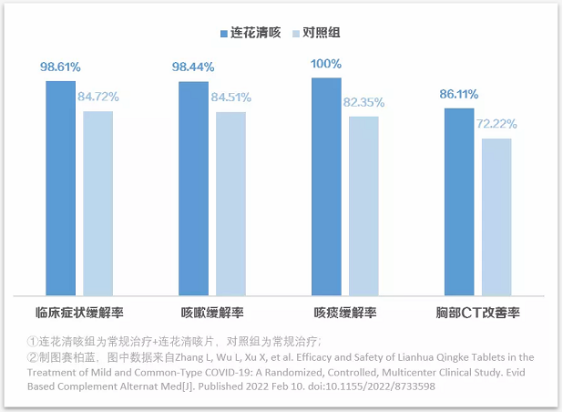 今年2月,国际学术期刊《循证补充和替代医学》刊发了题为《连花清咳片治疗轻型、普通型COVID-19的疗效和安全性的随机对照多中心临床研究》的科研论文,研究结果表明连花清咳片对症状性COVID-19的咳嗽、咳痰症状缓解率高、速度快。