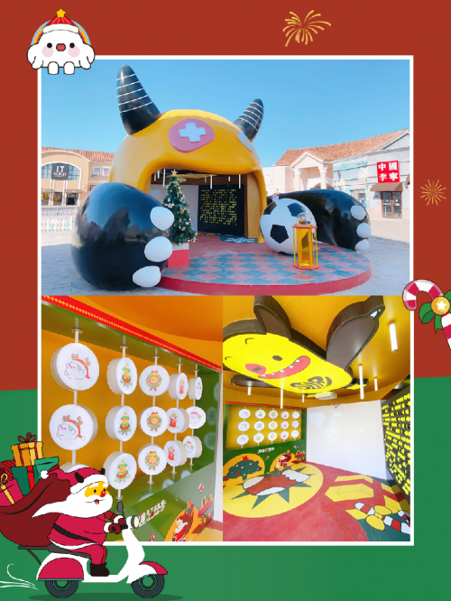 双旦超想季主题承载着对新年的美好愿景,围绕造梦兽和云朵妹的形象及IP属性,结合双旦氛围,打造以圣诞奇想乐园为核心的主题美陈展。在这里,你可以用手指描绘音乐,奏响心中的美妙之景;也可以尝试用手机互动扫码,将收到来自吉祥物造梦兽&云朵妹的祝福。前往商城B区寻找超大圣诞老人,和造梦兽一起过节吧!
