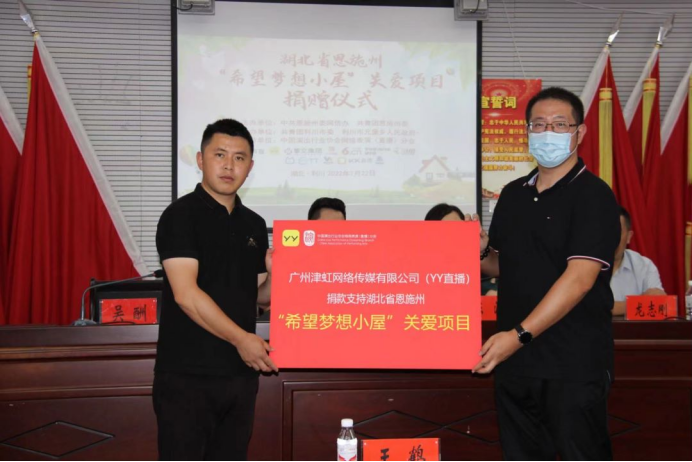 2022年,YY直播赴湖北恩施捐款支持“希望梦想小屋”关爱项目,为当地学子解决实际困难;为早日战胜疫情,YY直播持续针对抗疫开展公益捐赠活动,为疫情防控一线工作人员增添战“疫”力量。