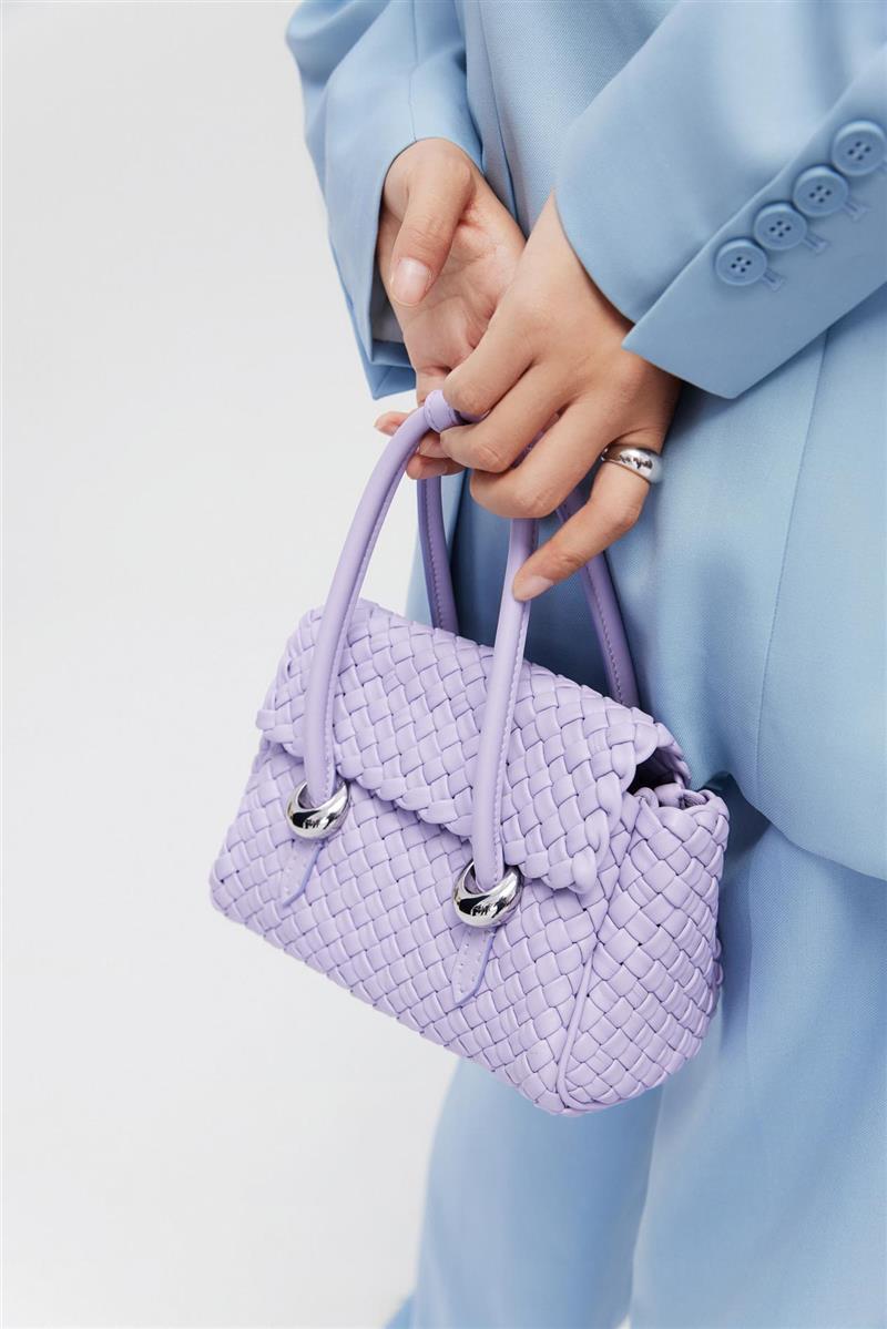 交错拼接呈现视觉错落,不对称却规则的线条打破正反两面的常规矩形,在张扬与内敛中寻找平衡,传递极简休闲却不失个性的生活态度;借助错落的方位结构,且在原有的包边突出边骨,用折纸感的手法展现极强的立体感。