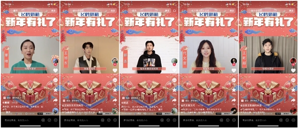 在「群星大拜年」模块的合作明星资源矩阵中,飞鹤汇集了演艺圈内多年龄层次、多圈层的姜潮、麦迪娜、李紫婷、郑乃馨、朱嘉琦、王乾越、王旭东、郭丞、代文雯、董晴等10位「星引力计划」专项明星,共同为用户送出新春祝福,人均粉丝量100万+的量级咖位,最终明星视频总播放量近1亿。
