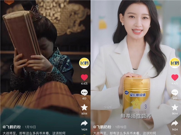 在这三部破次元化的「新春贺岁mini剧」中,用户可以看到「三国宇宙」里,喝下飞鹤星飞帆卓睿奶粉的“主公”宝宝,得以提升吸收力,在乱世之中得到心智的全面发展,最终吸收全部兵法,进而在战场上一番排兵布阵取得胜利。整体视频深深围绕着抖音用户的体验感,通过竖屏的拍摄手法,外加视频流露出的紧张氛围,仅从前3s就牢牢抓住了用户眼球。