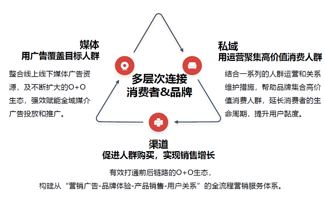 当品牌选择加入一个集媒体、私域、渠道集一体的平台生态,营销发挥的价值远大于功能的叠加。正如秒针营销科学院在《O+O品牌营销研究报告》中提出,品牌人群资产的运营基础是平台的选择,选择融合线上、线下的媒体(可投放广告)、私域(可沟通消费者)和渠道(可售卖产品)的平台,能触达更多消费者,循环往复,最终实现品牌高质量增长。