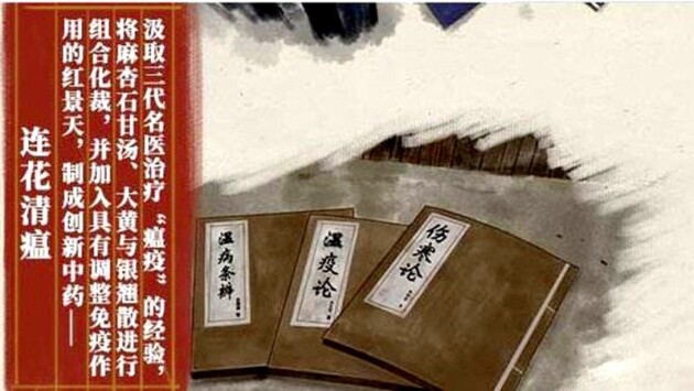 以连花清瘟为例,它是中医药两千多年沉淀下来的瑰宝,其将东汉医圣张仲景所创的“麻杏石甘汤”、清代著名中医学家吴鞠通所创的“银翘散”、明代名医吴又可治疗瘟疫最常用的大黄等进行科学配比,汇聚了三个朝代的历史智慧和治疗外感温病及疫症的中药精华。从中医视角来看,连花清瘟能够促进火热毒邪排出体外,阻断疾病恶化。从现代医学视角来看,近些年几乎所有与呼吸道传染性病毒相关的疾病,例如SARS病毒、甲型H1N1流感病毒、新冠病毒等,连花清瘟均通过大量基础实验和临床研究,证实其良好确切的广谱抗病毒作用。