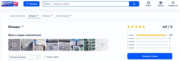 在素有“俄罗斯亚马逊”之称的Ozon上搜索连花清瘟,销冠链接里有213位用户进行了评价打分,其中5星好评占比93.9%。还有俄罗斯知名电商平台Wildberries上的连花清瘟,24粒颗的盒装款在俄售价为459卢布(约合40元人民币),销量最高的链接购买次数已超过25500次,274条购买后评价中不乏带图长评。