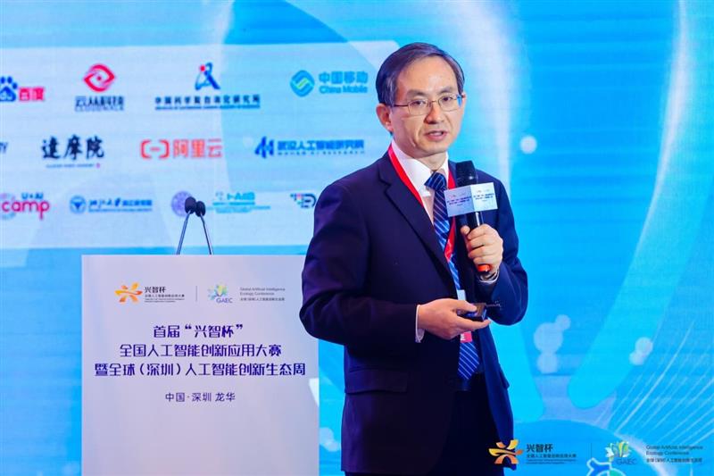 在大赛颁奖环节,中国信息通信研究院院长余晓晖介绍,首届“兴智杯”全国人工智能创新应用大赛吸引来自全国全部省级行政区以及美、加、英、澳等其他11国共计1.6万余人报名参加,推动形成了一批跨领域、跨行业的创新联合体。赛事涌现挖掘出一批技术领先、思路新颖、效果出众的算法模型,加速了人工智能与工业、生物医药、能源、网络通信等行业的深度融合。随后,论坛举行了首届“兴智杯”创新应用大赛生态构建专题赛及总决赛颁奖典礼,百度、阿里、华为、中科院自动化所、元戎启行、云从科技、深势科技、联汇科技、中国移动等大赛支持单位,以及工信部、广东省、深圳市、龙华区和中国信通院领导为大赛获奖团队颁奖。