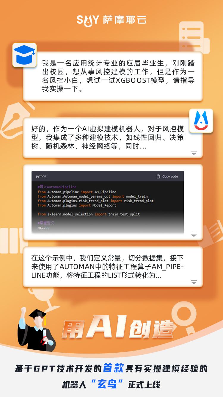 满怀热AI,共赴山海。“玄鸟”集成多种建模技术,如线性回归、决策树、随机森林、神经网络等,同时,还自研了多种科技算子;经典实操案例分析叠加 Automan建模工具,带你分分钟玩转建模,不停地前行去看更美的风景。目前此块的应用处在初级阶段,初级DEMO正在测试中。但随着公司不断地加大资源投入,同时,基于“玄鸟”快速易上手的友好属性,未来能够更好地帮助大学生通过丰富的模型类型,提升建模技能,为其提供风险管理、建模技术、编程技术、实践和应用等学习建议,赋能培养AI复合型人才。