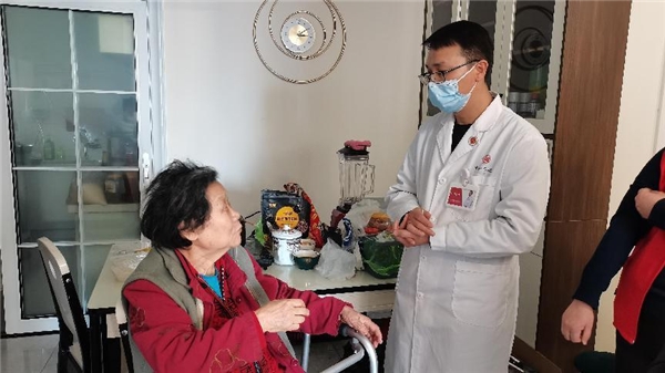 吴冬蕾医师为徐蕊奶奶检查口腔
