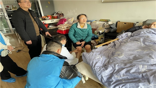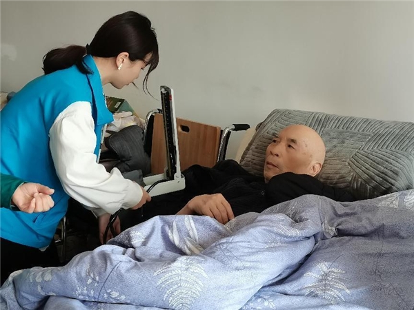 当我们来到最后一位老人徐爷爷家时,时间已经来到了下午4:30,徐爷爷退休前是一位工程师,今年已经85岁了,刚刚过了本命年,现在是由大女儿全职照顾他,从徐爷爷的大女儿徐蕊奶奶口中我们得知,她的父亲已经瘫痪十年了,自己从2012年就开始照顾他,并且可以从徐爷爷的精神状态看得出照顾得非常细心,志愿者们都感到不可思议,因为老人一点也不像是瘫痪了10年。随后志愿者赵昕为徐爷爷进行了血压测量,并根据测量结果为他提供了科学的指导和中医养生建议。