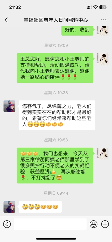幸福社区老年人日间照料中心王俊翔经理的肯定