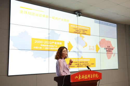 3月6日,潍坊市各个纺织企业受邀参与在山东科技职业学院举办的“潍坊市纺织服装产业联盟第二届理事会第二次会议暨纺织工业园区建设经验推机会”。昇非一体化产业园也受邀参与其中,会上向大家介绍了旗下贝宁格鲁吉贝产业园的相关情况。