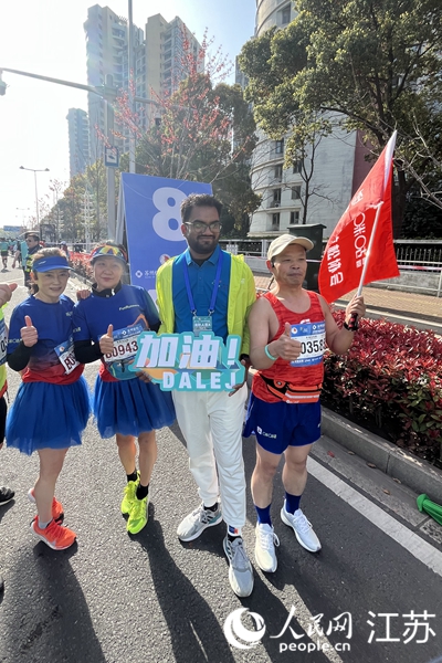 参加苏州马拉松的外国志愿者。吴洪跃摄