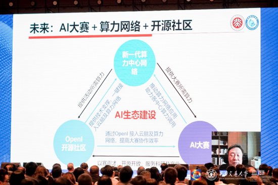 中国工程院院士、鹏城实验室主任高文作题为《开源智算平台赋能新一代人工智能教育》的报告(线上)。