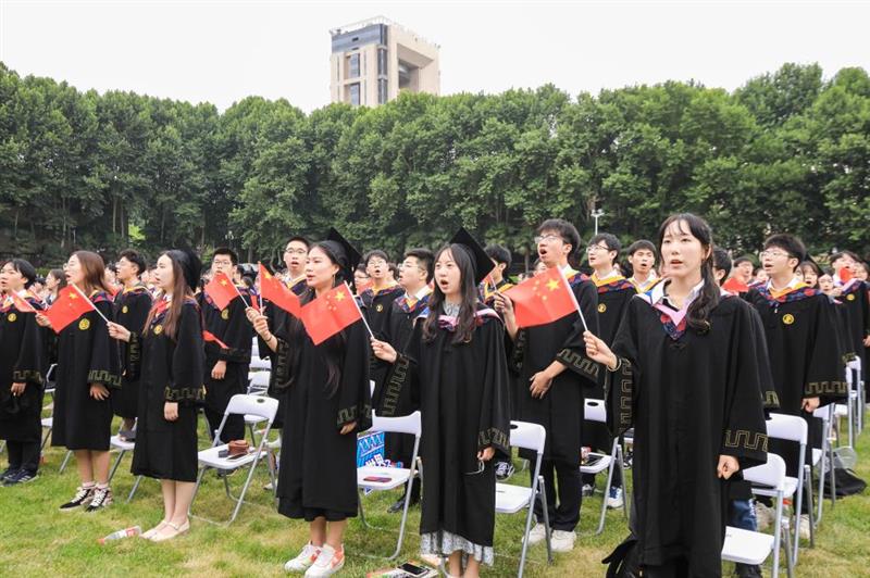 在《歌唱祖国》的激昂乐曲中,毕业典礼圆满结束。