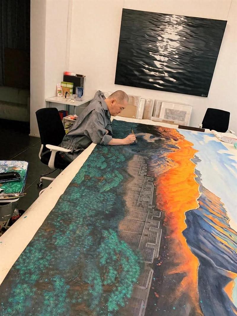 艺术家郝军对于长城的热爱和对绘画艺术的执着追求,打动着无数人。