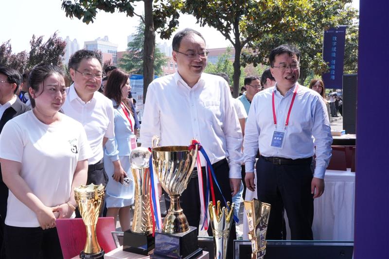 省委教育工委副书记、省教育厅厅长王树声在展区参观指导
